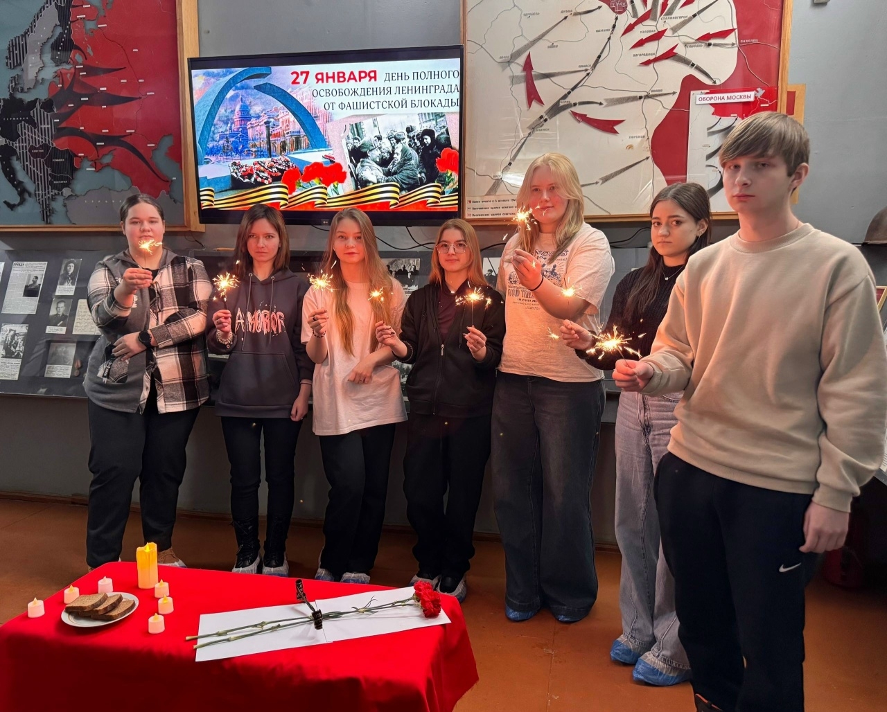 В 82-ю годовщину снятия блокады Ленинграда посетители музея – студенты Тульского экономического колледжа зажгли бенгальский огонь – символ мужества и стойкости ленинградцев и советских воинов.