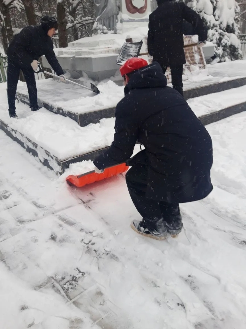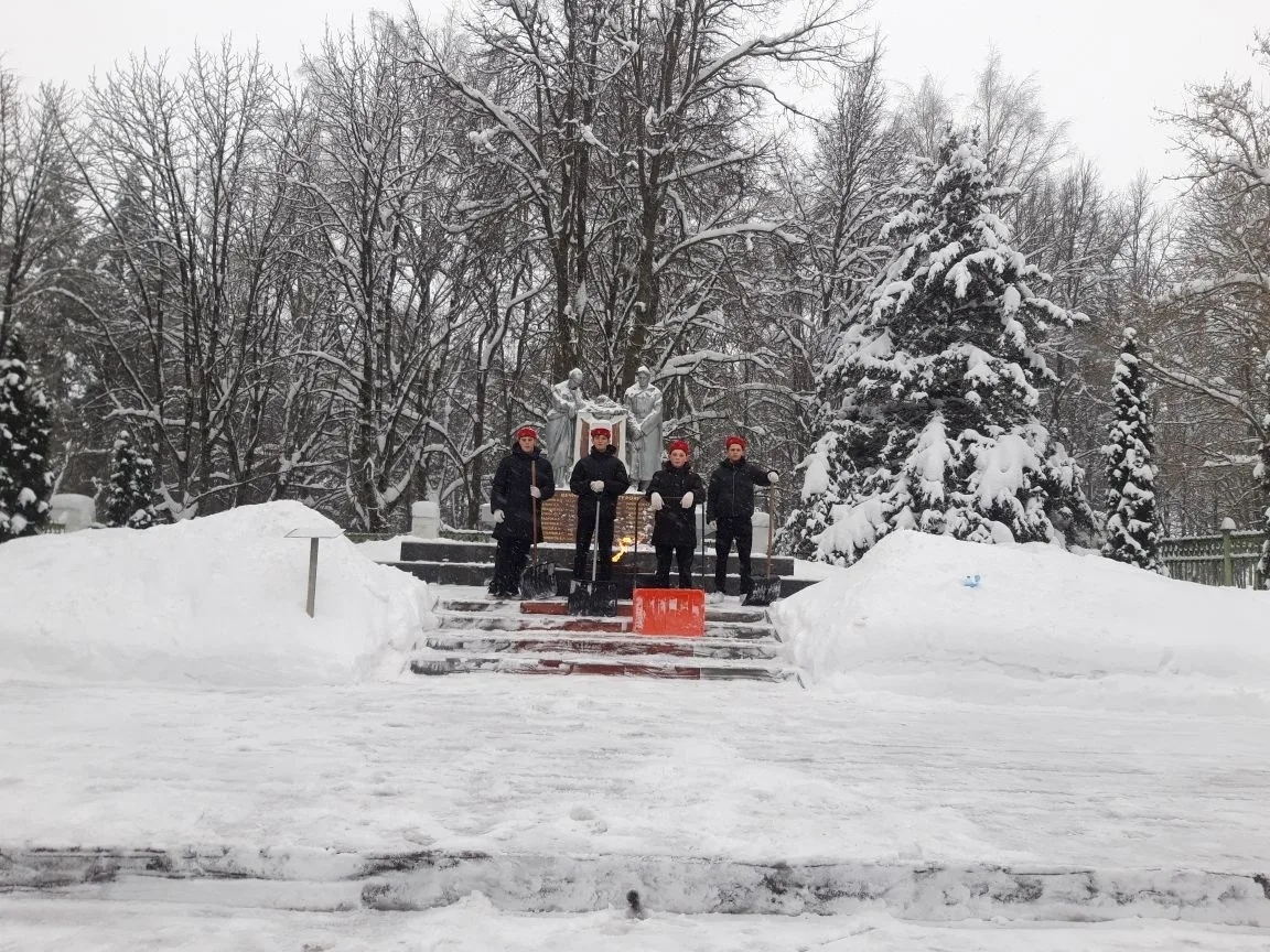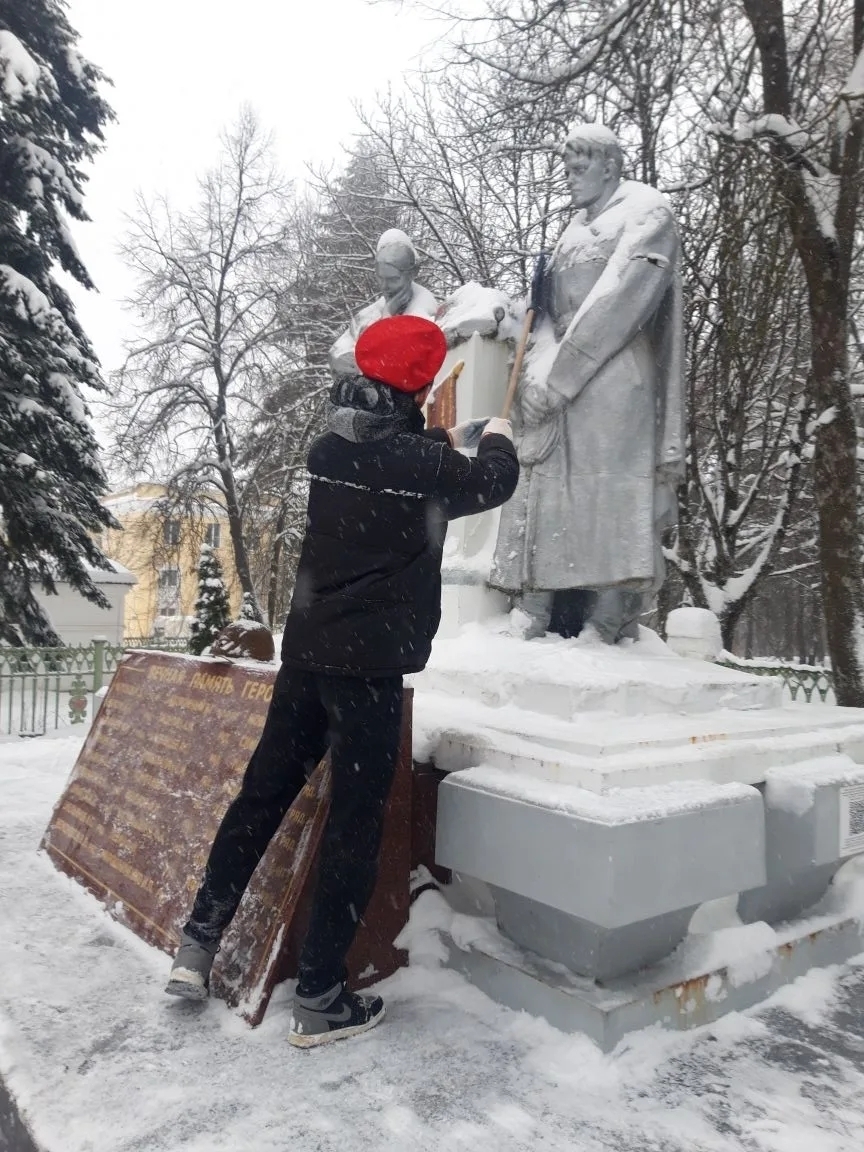 Юнармейцы отряда «Пламя» Советской средней школы №2 организовали очистку памятника «Скорбящая женщина и воин» от снега. Ребятами был расчищен подход к памятнику и близлежащая территория, убран снег с постамента с именами погибших. Благоустройство памятника – это дань памяти перед поколением, прошедшим войну, перед их мужеством и стойкостью.