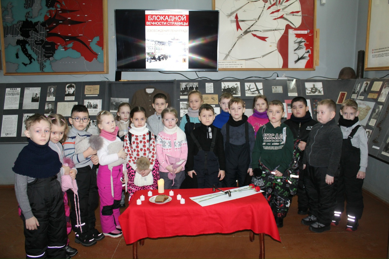 Во время мероприятия дошкольники слушали рассказы о героическом сопротивлении ленинградцев, их повседневных испытаниях и невероятной силе духа.