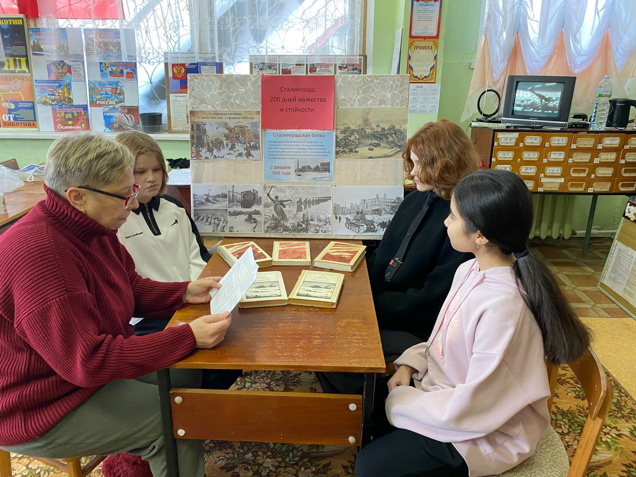 К этой знаменательной дате в Юбилейной сельской библиотеке состоялся урок мужества «Город русской славы – Сталинград». 200 дней и ночей ожесточенных боев, завершившихся триумфальной победой Красной Армии, навсегда сделали само слово «Сталинград» олицетворением стойкости, отваги и несгибаемой воли.