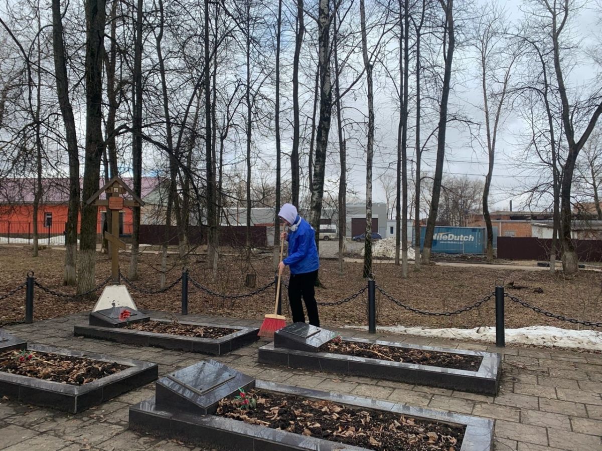 Команда Центра поддержки добровольчества Щекинского района провела субботник возле Братской могилы на улице Льва Толстого в городе Щекино.