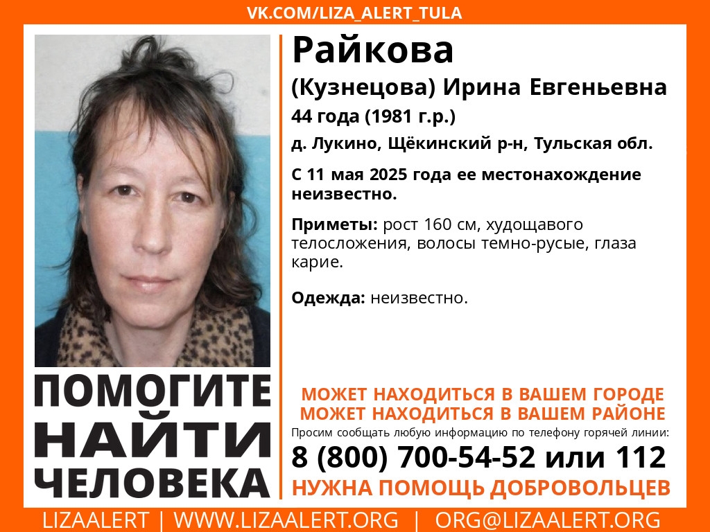 В Тульской области пропала 44-летняя женщина