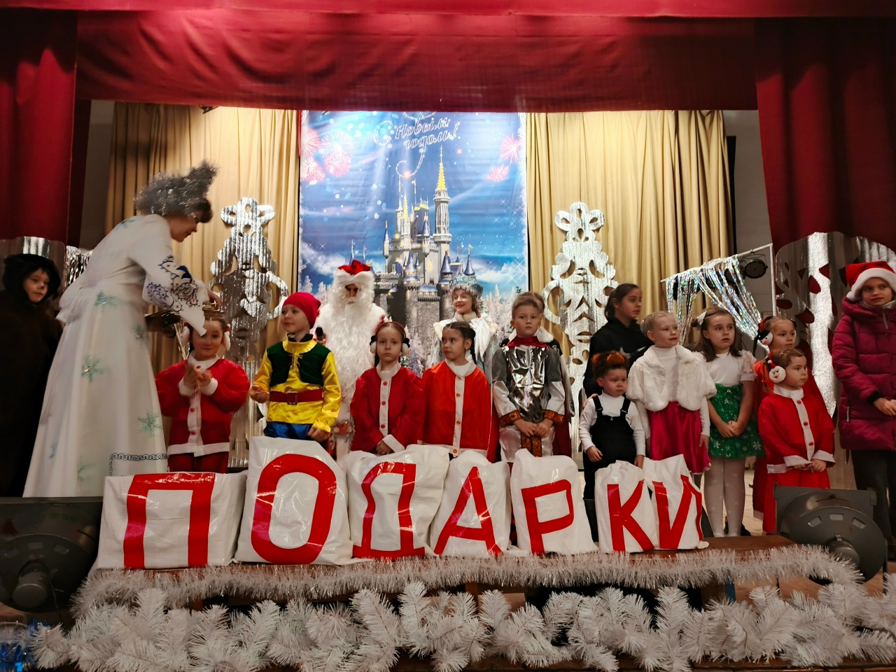 Ребята окунулись в атмосферу праздника, встретились с Медведем, который встретил их у дверей в зал, Зимой и Метелью, поиграли с Кикиморой и приняли участие в увлекательном Новогоднем аукционе.