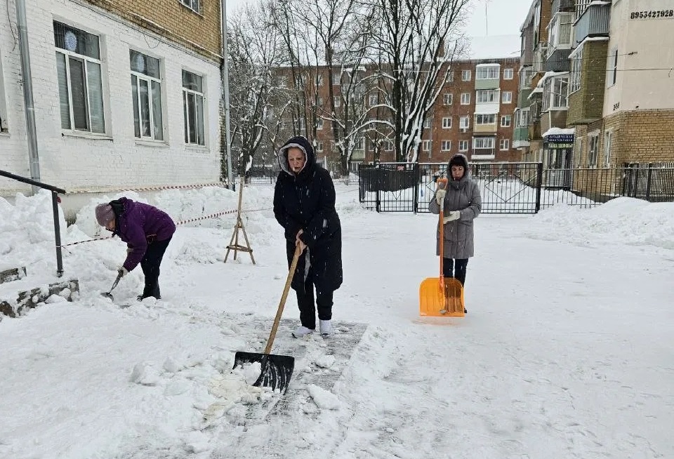 #чистимвместе В морозное утро активные сотрудники и неравнодушные родители, вооружившись лопатами и скребками, вышли на борьбу со снежной стихией.