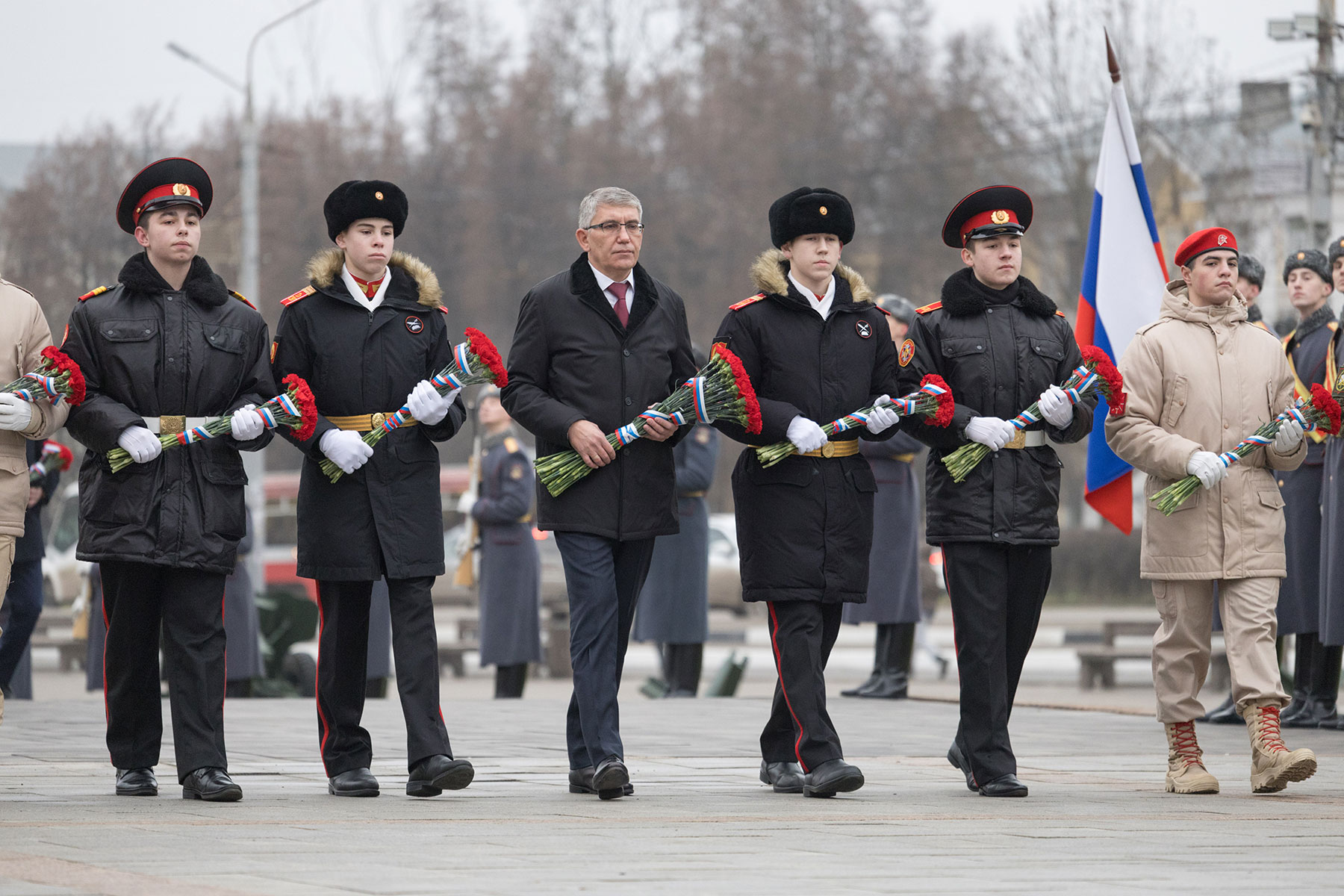 На площади Победы в Туле состоялась церемония возложения гирлянды и цветов, приуроченная ко Дню обороны Тулы.