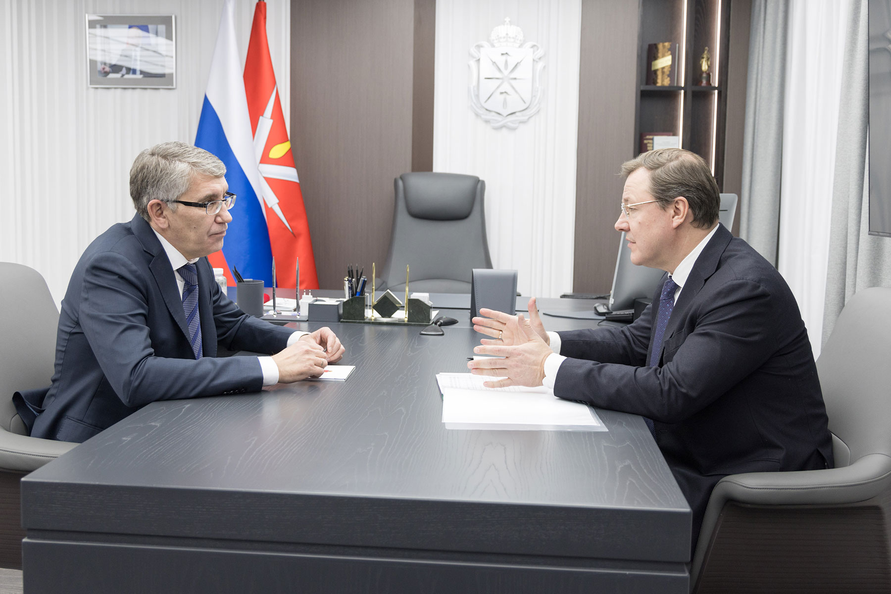 21 января губернатор Дмитрий Миляев провел рабочую встречу с руководителем департамента региональных представительств ГК «Ростех» Дмитрием Азаровым.