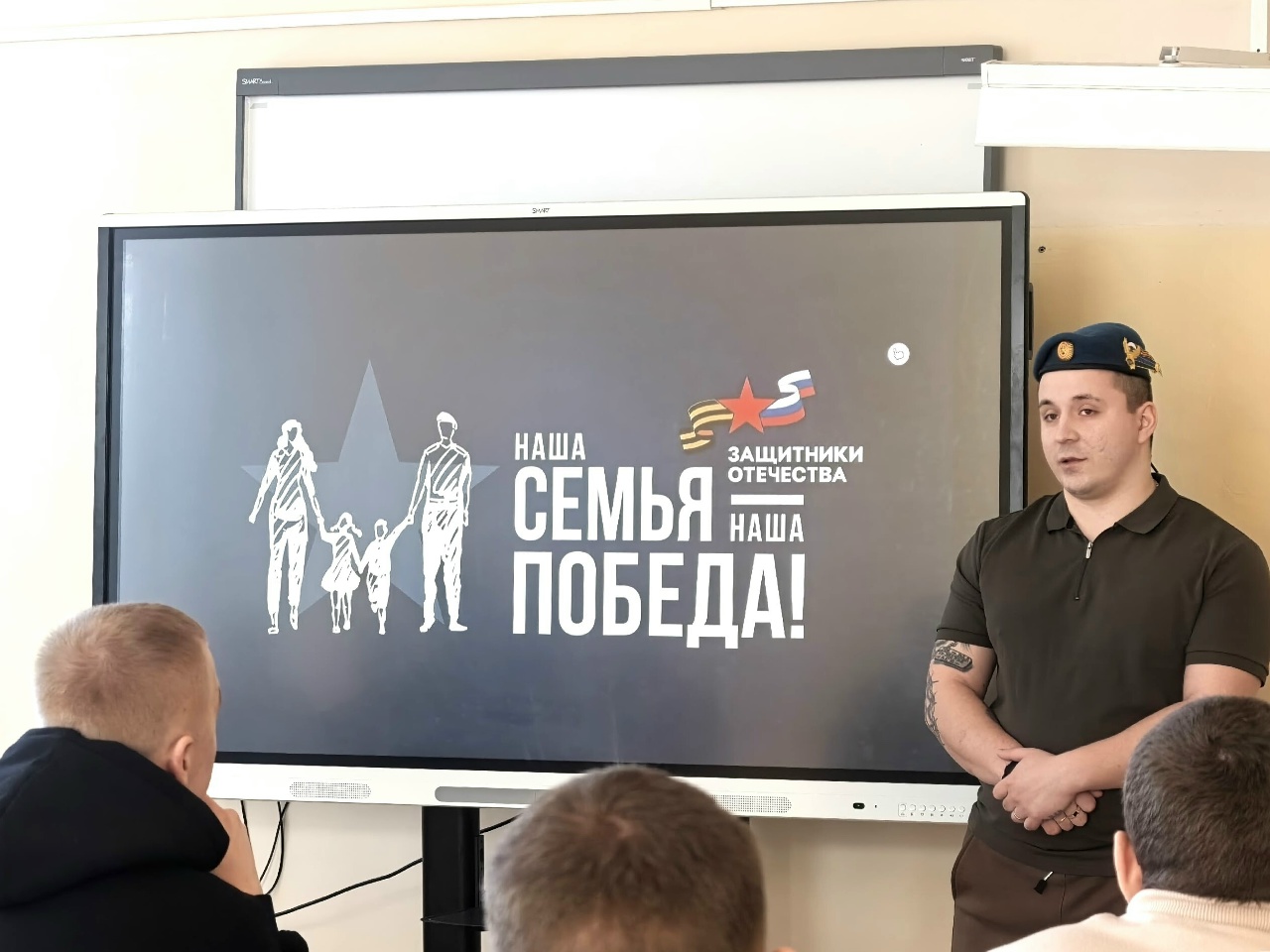 Гость рассказал студентам о своей военной службе, ранении, долгом лечении в госпитале и о том, как поддержка семьи помогла ему пройти через все испытания.