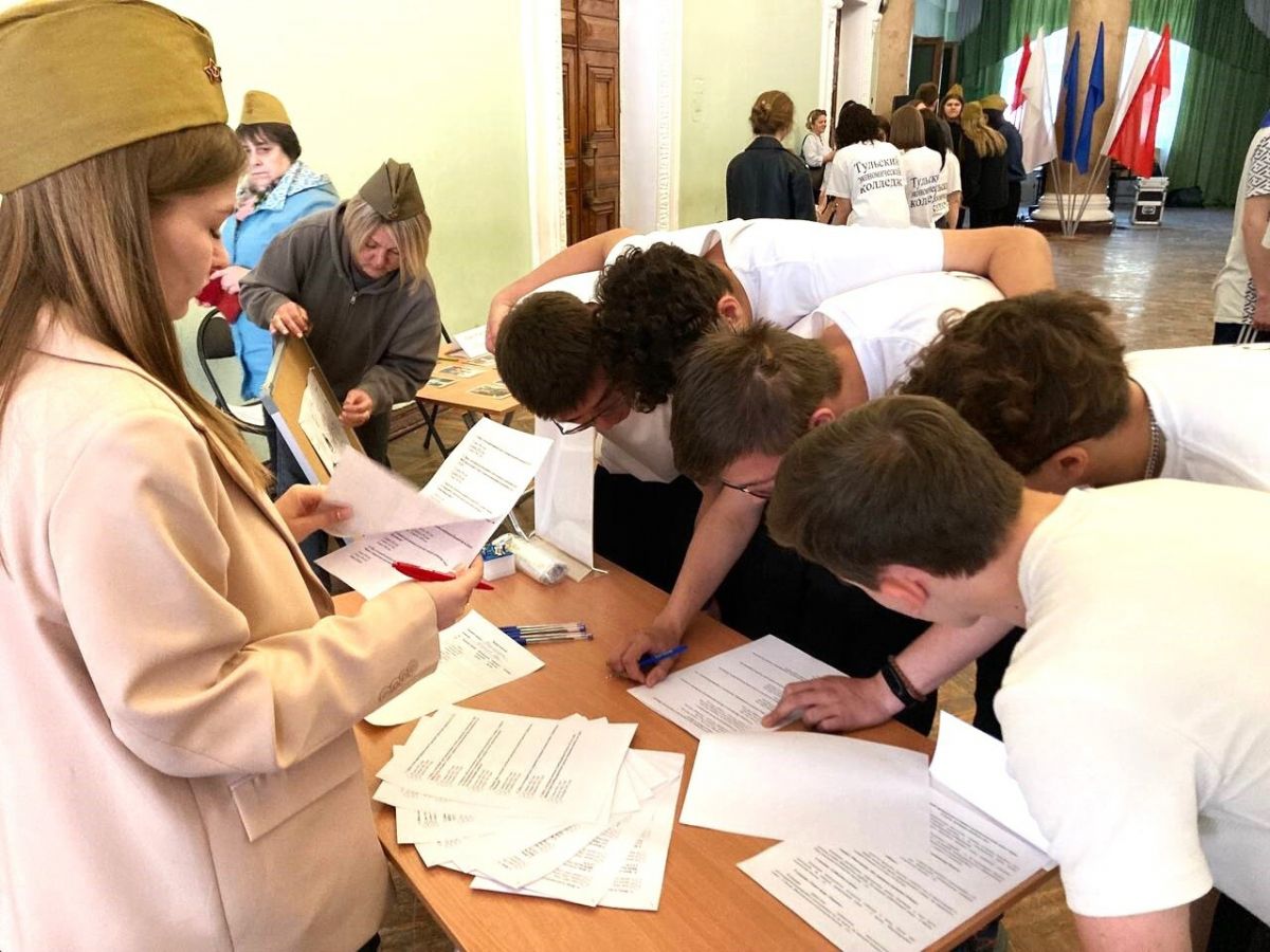 Всего приняли участие 8 команд, которые состязались в прохождении увлекательных станций. Участникам нужно было соотнести фамилии великих полководцев с их портретами. Также предлагалось написать письмо, сложить его в треугольник и написать адрес и номер воинской части. Далее командам необходимо было перечислить имена земляков, в чью честь названы улицы Щекинского района. Ребята сопоставляли фотографии времен Великой Отечественной войны с современными изображениями.