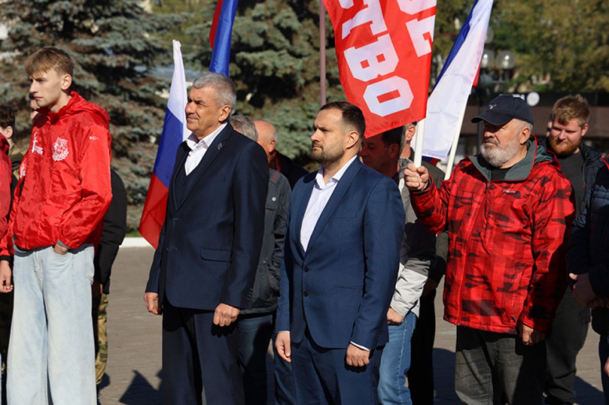 В День воссоединения ДНР, ЛНР, Запорожской и Херсонской областей с Российской Федерацией на площади Победы в Туле прошел торжественный митинг.