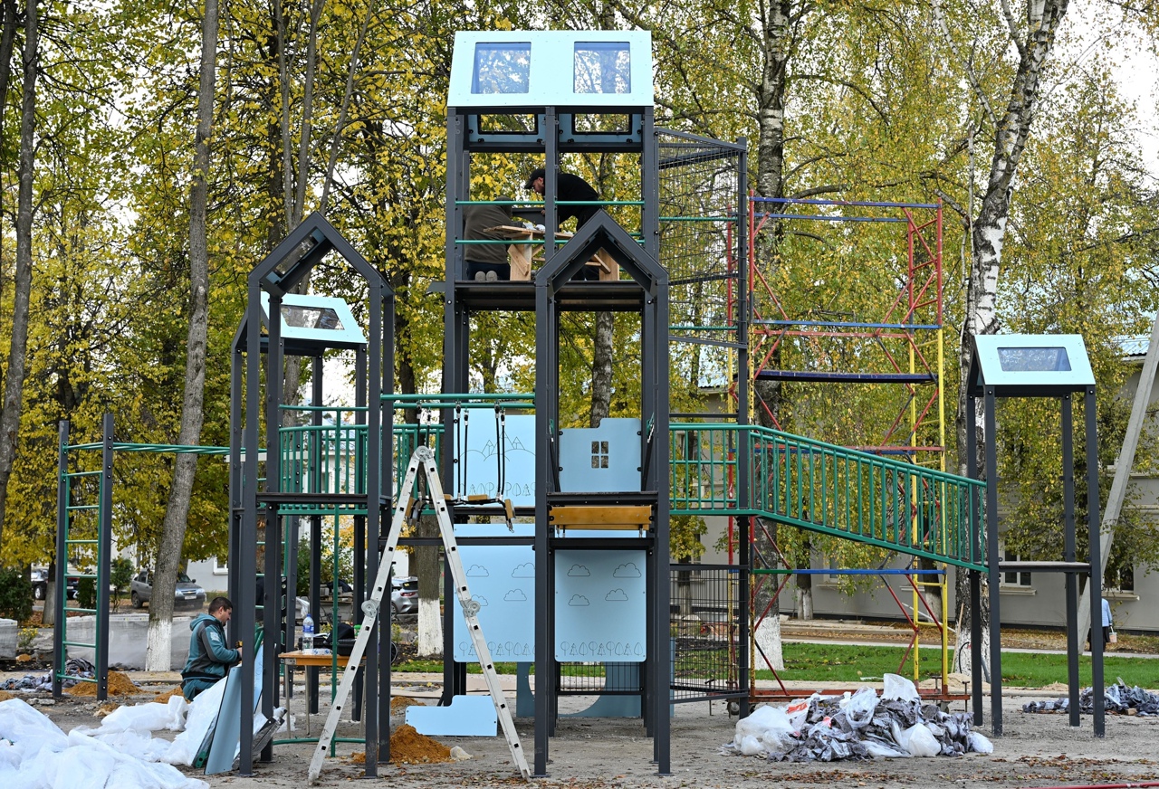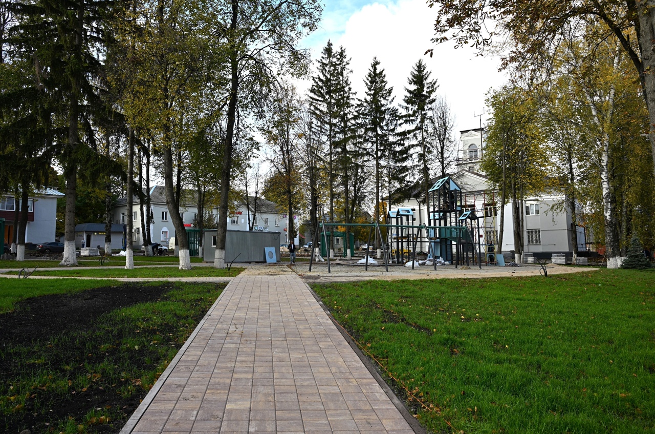 Если организация пространства на площади отвечает больше запросу на событийные городские мероприятия, то сквер станет уютным местом для спокойного семейного отдыха. На объекте уже установлены беседки и обустроены пешеходные дорожки. Продолжается монтаж детского игрового комплекса.