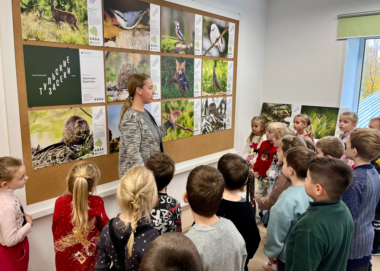 Ребятам были представлены птичьи гнезда, слепки следов зверей-обитателей засек и прочие интересные находки, сделанные биологами на территории Национального парка «Тульские засеки».