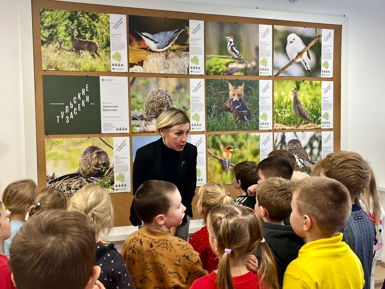 Среди представленных видов — длиннохвостые синицы, яркая золотистая щурка, коростель, краснокнижный воробьиный сыч, серая цапля и её природный враг — лисица, европейская косуля, бобр. Ребят познакомили с интересными фактами об этих обитателях заповедных лесов, лугов и рек.