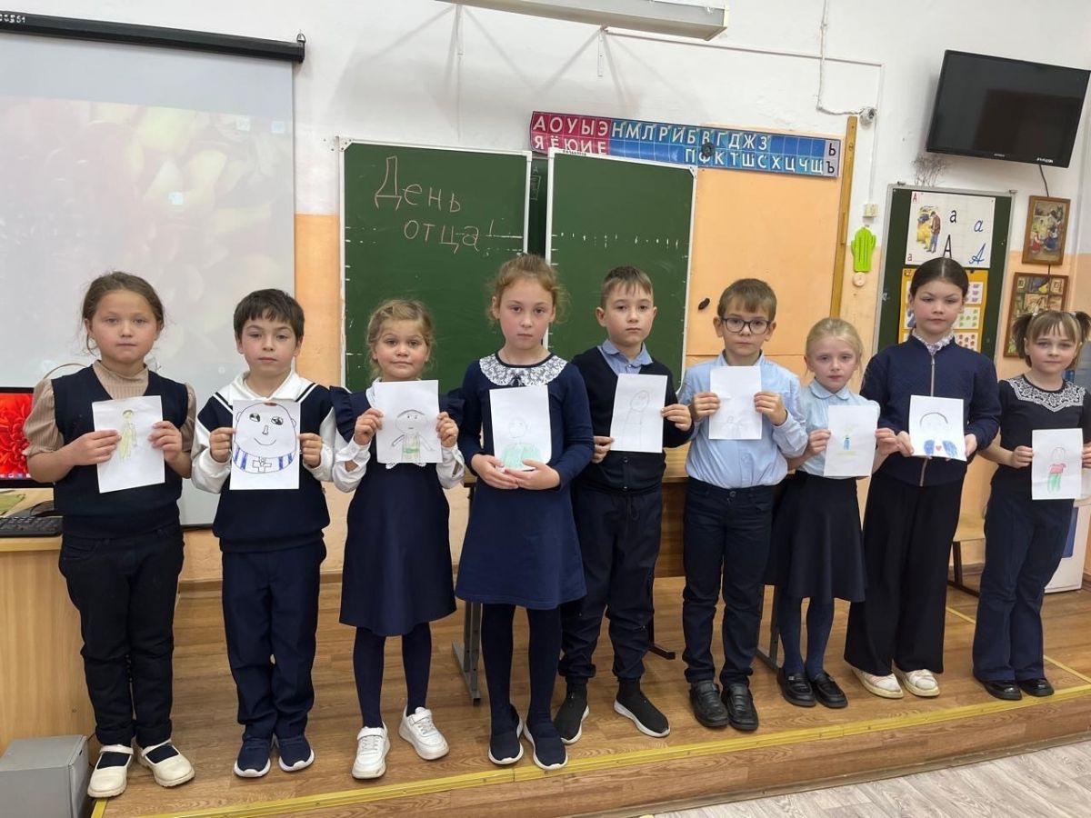 Ребята разгадывали загадки, отвечали на вопросы, рисовали портреты своих отцов.