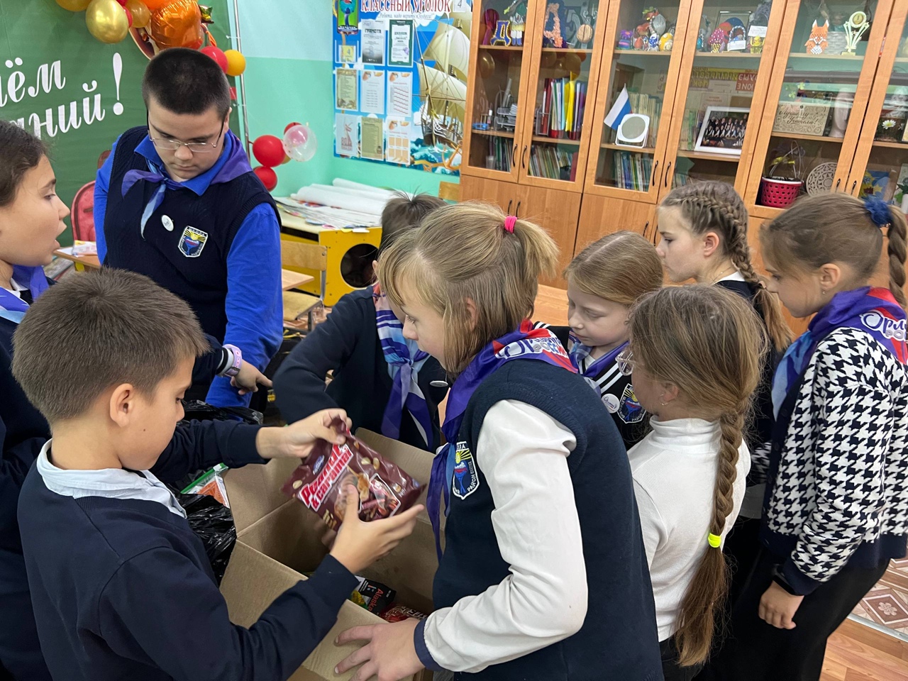 Школьники вместе с классными руководителями и родителями сформировали несколько больших посылок. В них – не просто стандартный набор необходимого, а самые искренние пожелания и частичка домашнего тепла. Ребята собрали долгохранящиеся продукты, сладости, предметы первой необходимости, средства гигиены, а также тёплые носки и вязаные варежки.
