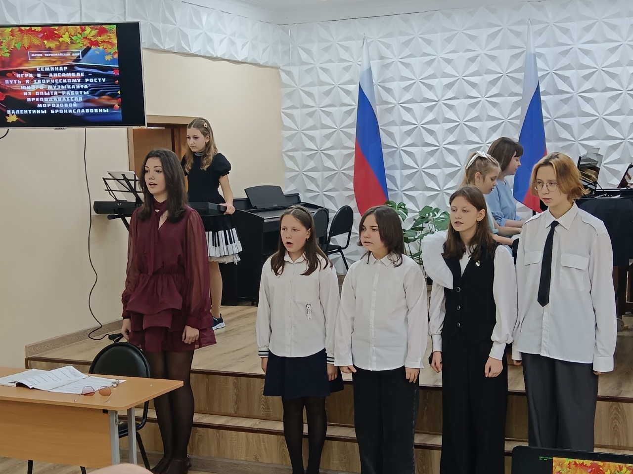 В музыкальных иллюстрациях участвовали учащиеся класса Валентины Брониславовны, а также ученики преподавателей Анны.