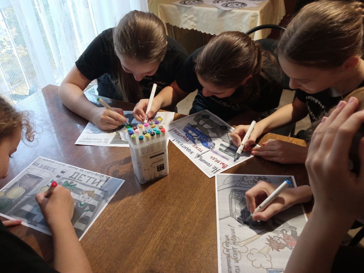 Дети рисовали рисунки на тему дорожных правил и внимательно слушали беседу о безопасном поведении на дороге.