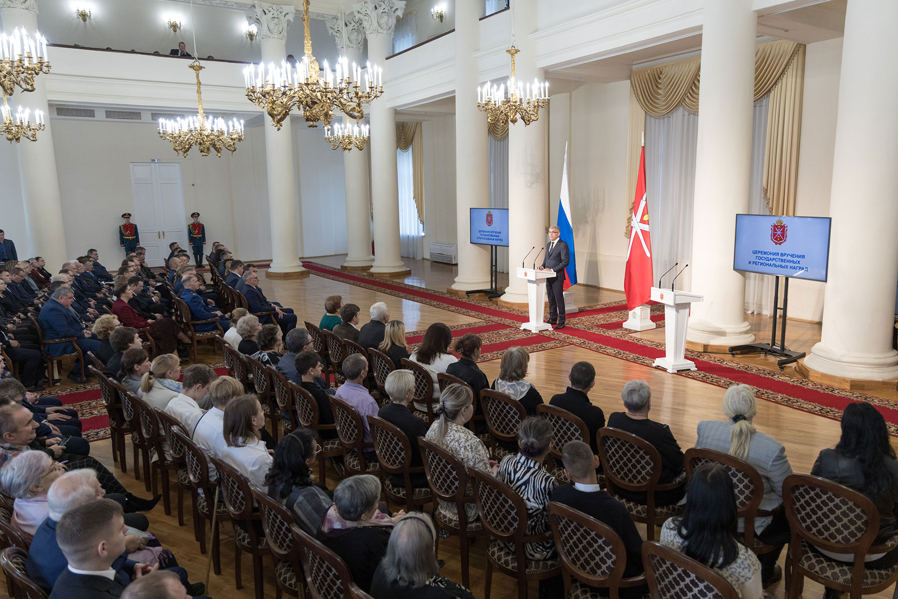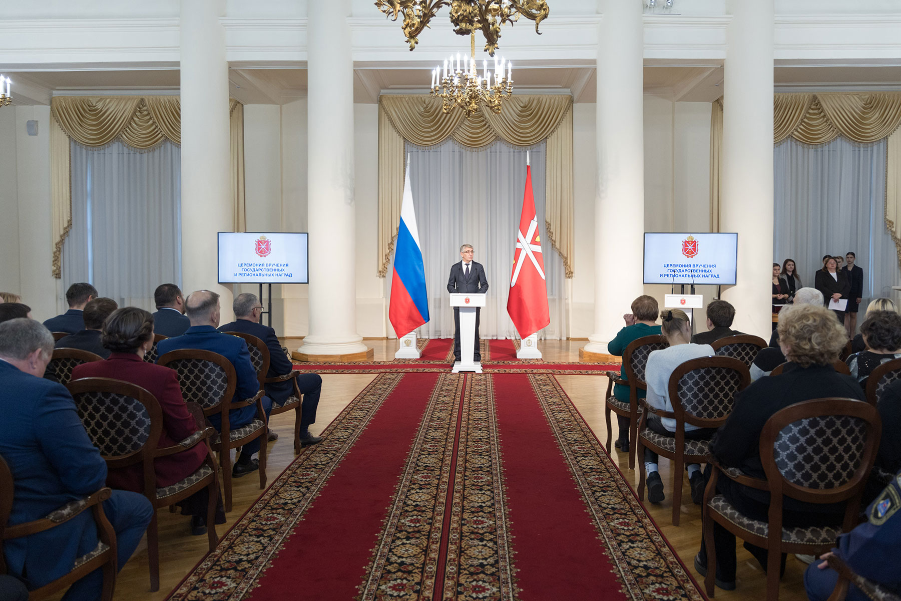 В колонном зале Дома Дворянского собрания Губернатор Дмитрий Миляев принял участие в церемонии вручения наград.