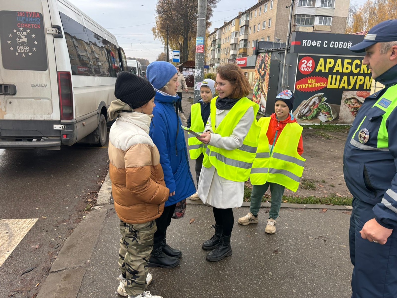 Ученики 4Б класса школы №20 совместно с сотрудниками Управления Госавтоинспекции УМВД России по Тульской области приняли участие в акции по безопасности дорожного движения «Стань заметнее на дороге».