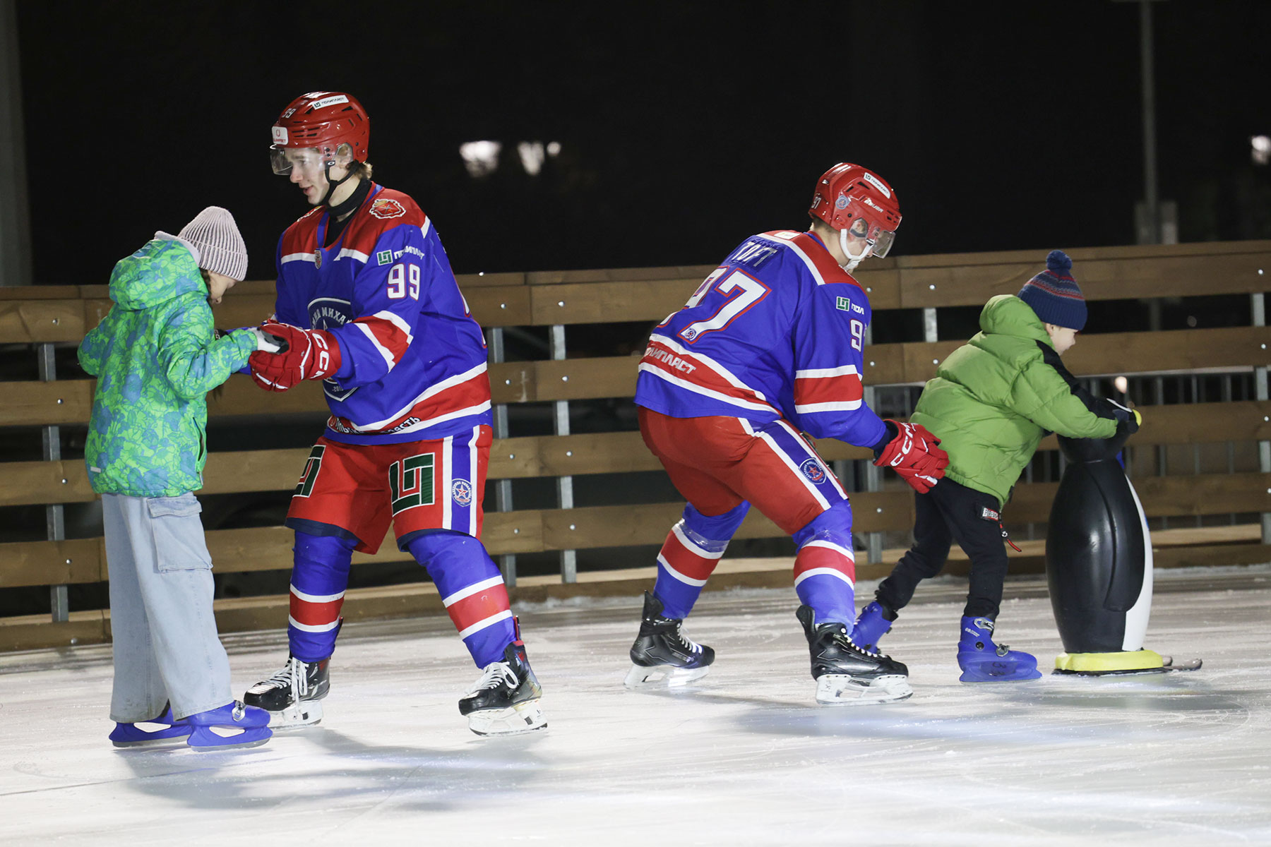 А хоккейная команда «Красная машина» вместе Алексеем Ковалёвым сыграла с тульской детской командой «Тигры» под выступление финалистки «Голос. Дети» и победительницы конкурса «Детская Новая волна» Анны Волковой.