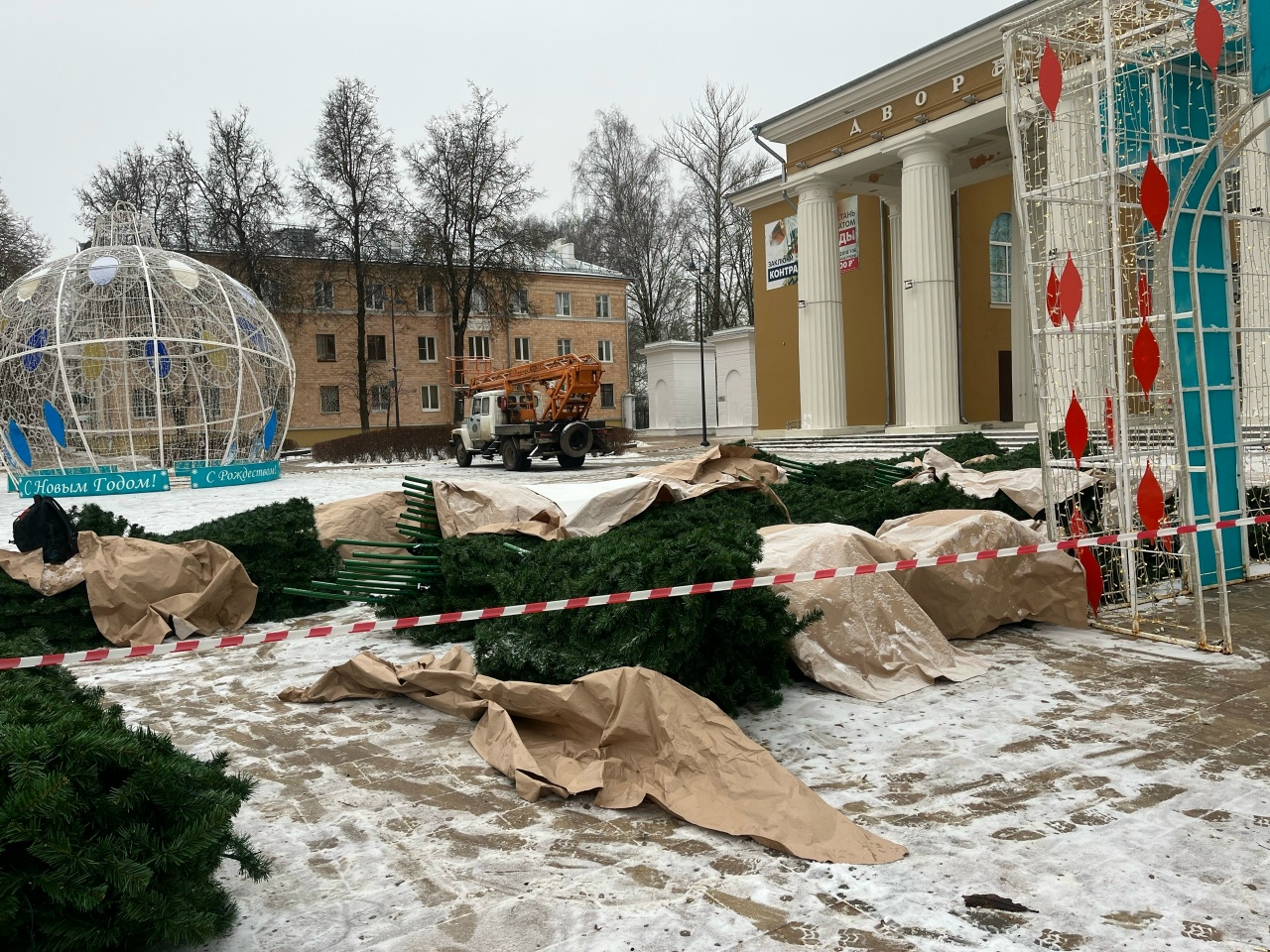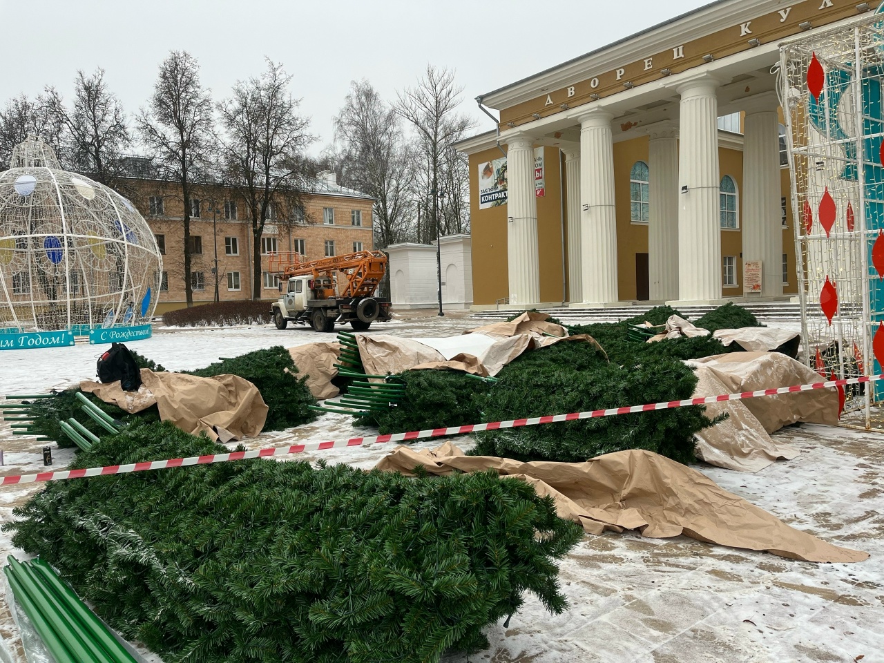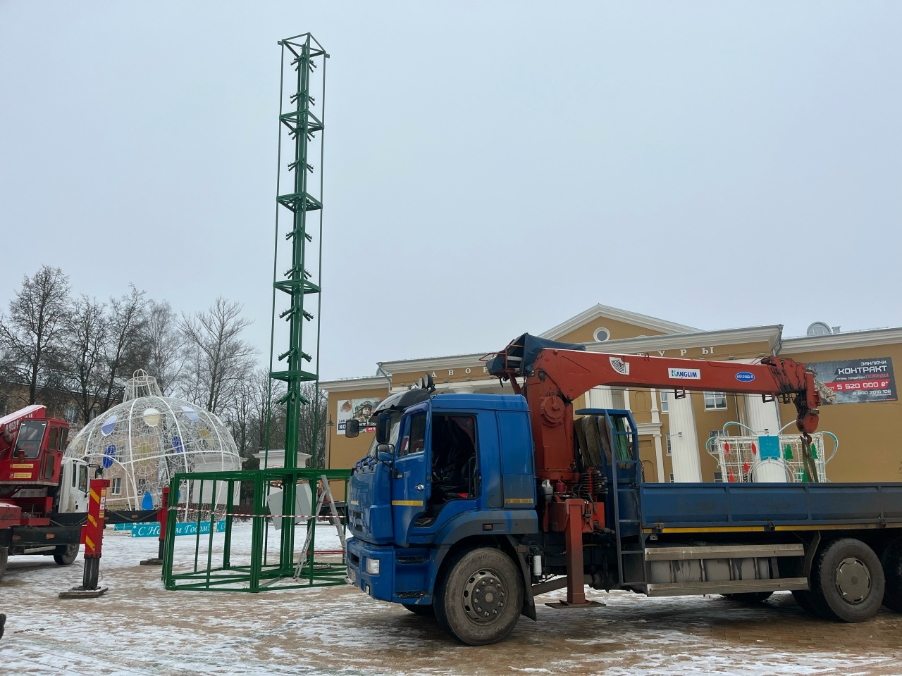 3. В Щёкино устанавливают главную новогоднюю ёлку