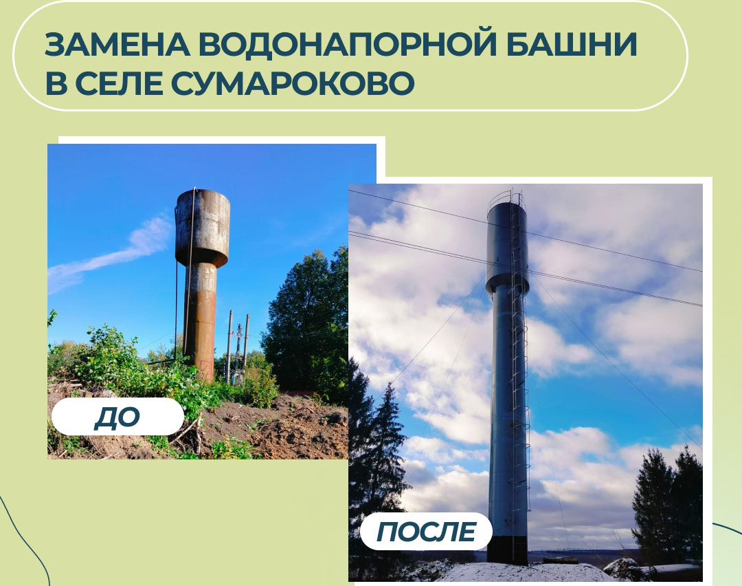 В Щекинском районе ремонт проведен сразу на 4 водонапорных башнях: село Липово, деревня Сорочинка, деревня Грецовка, село Сумароково.
