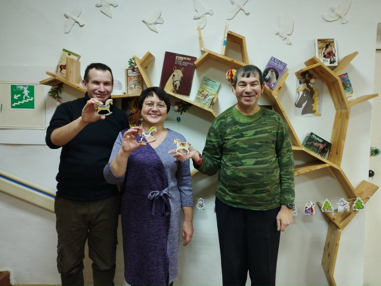 Вдохновившись этим прекрасным образом, члены клуба «Калейдоскоп» при Щекинской межпоселенческой центральной библиотеке посвятили своё очередное занятие созданию новогодних оберегов и украшений. Участники клуба с особым старанием и теплом украшали деревянные заготовки-лошадки, используя яркий бисер и клей. В умелых руках простые деревянные формы превращались в сверкающие миниатюрные шедевры, каждая со своим характером. Такая лошадка станет чудесным украшением новогодней ёлки в качестве уникальной игрушки, созданной с душой, или же может дополнить праздничную сервировку стола, привнося в дом атмосферу волшебства и ожидания чуда.