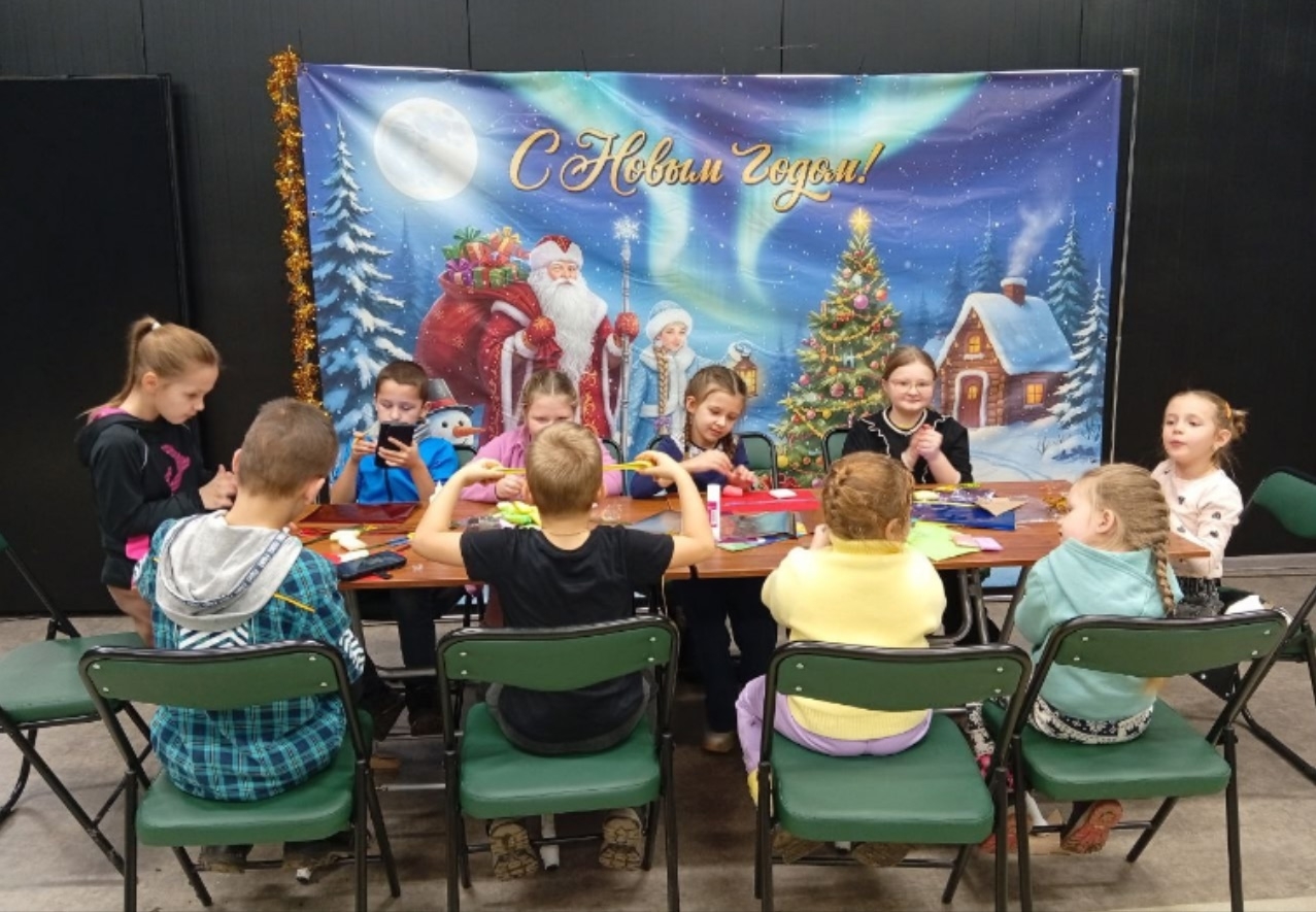 Участники создавали своими руками яркие игрушки для новогодней ёлки, установленной в Доме культуры.
