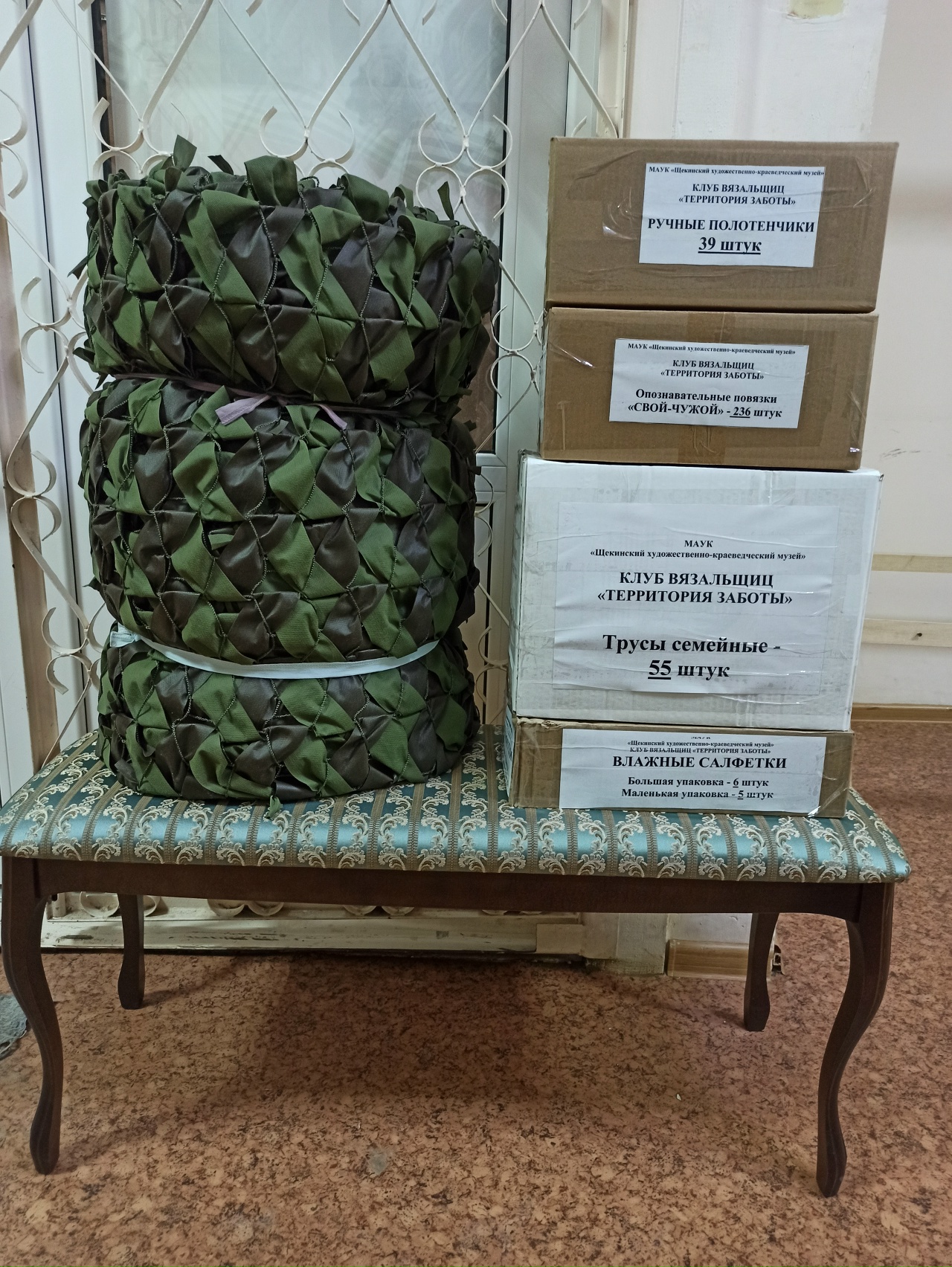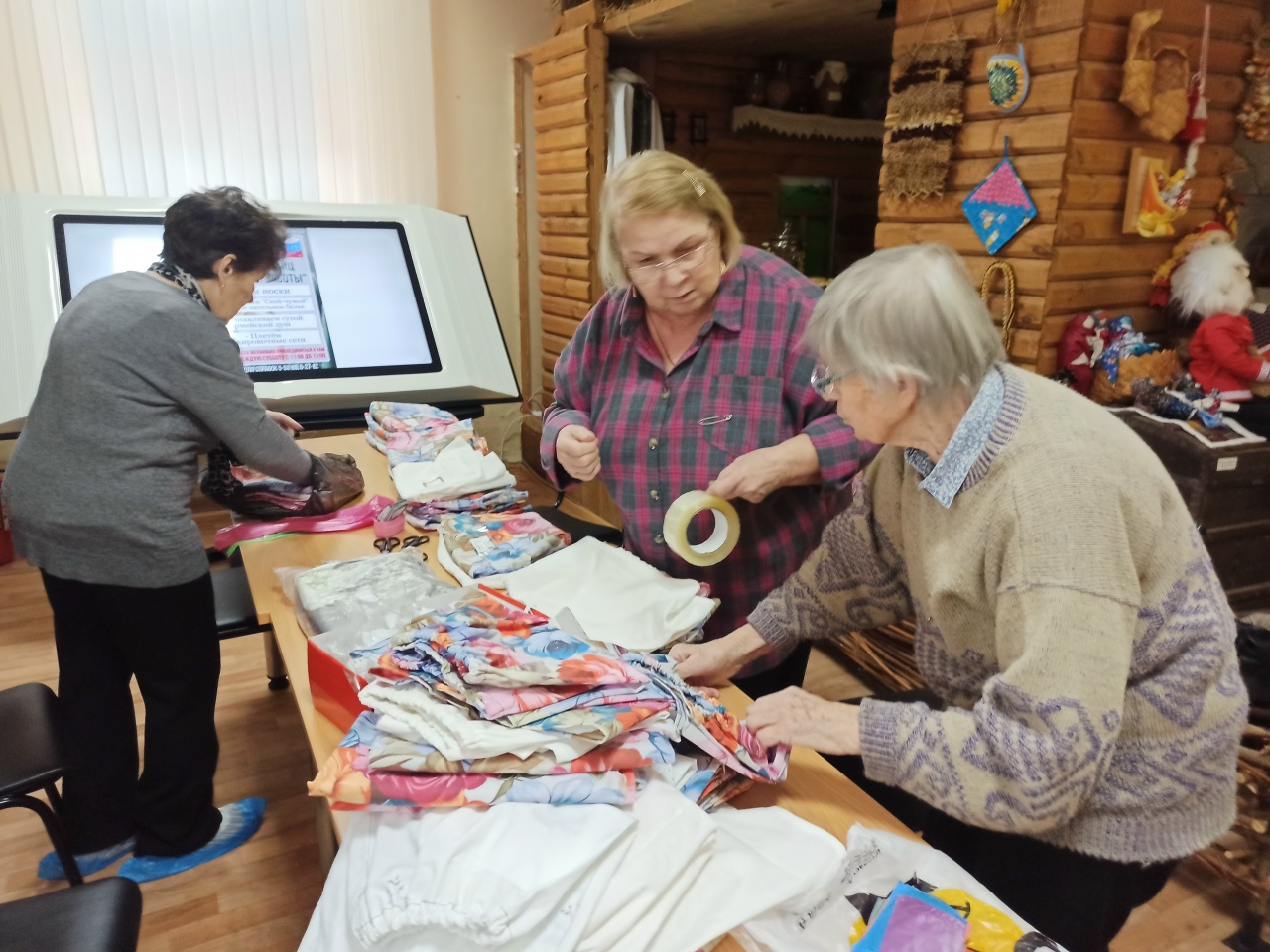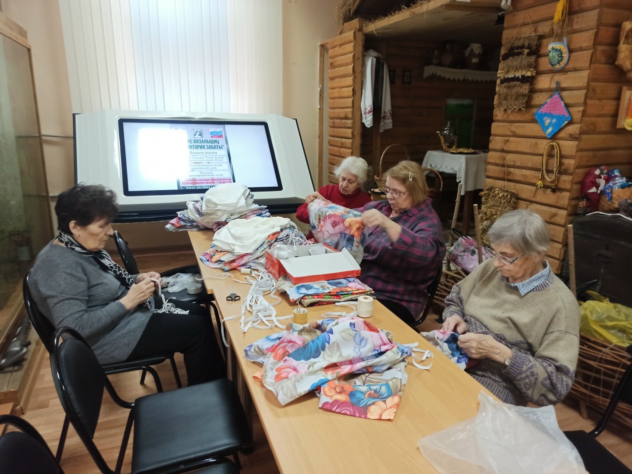 Участники клуба закончили плести 29-ю по счету маскировочную сеть. Продолжили работу по вязанию шерстяных носков и нарезке ленточек для изготовления маскировочных накидок. Раскроили детали 74 предметов одежды, ежедневно необходимой бойцам. Подготовили для передачи 6 больших и 5 маленьких упаковок влажных салфеток, 236 опознавательных повязок «Свой-Чужой», 39 ручных полотенчиков, 55 предметов нижнего белья.