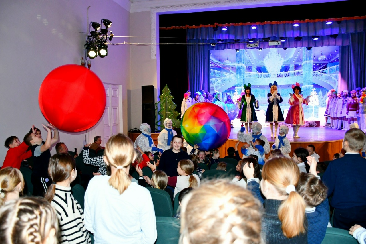 Волшебство началось уже в фойе, где гостей встречали забавные снеговики и весёлые скоморохи, вовлекая всех в хороводы и игры. А главным подарком стал спектакль, над которым творческая команда Дворца культуры работала несколько месяцев.