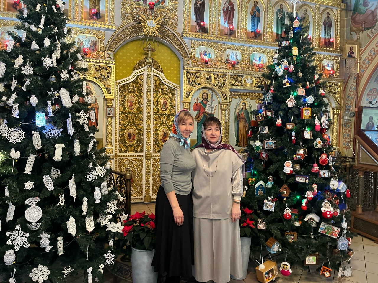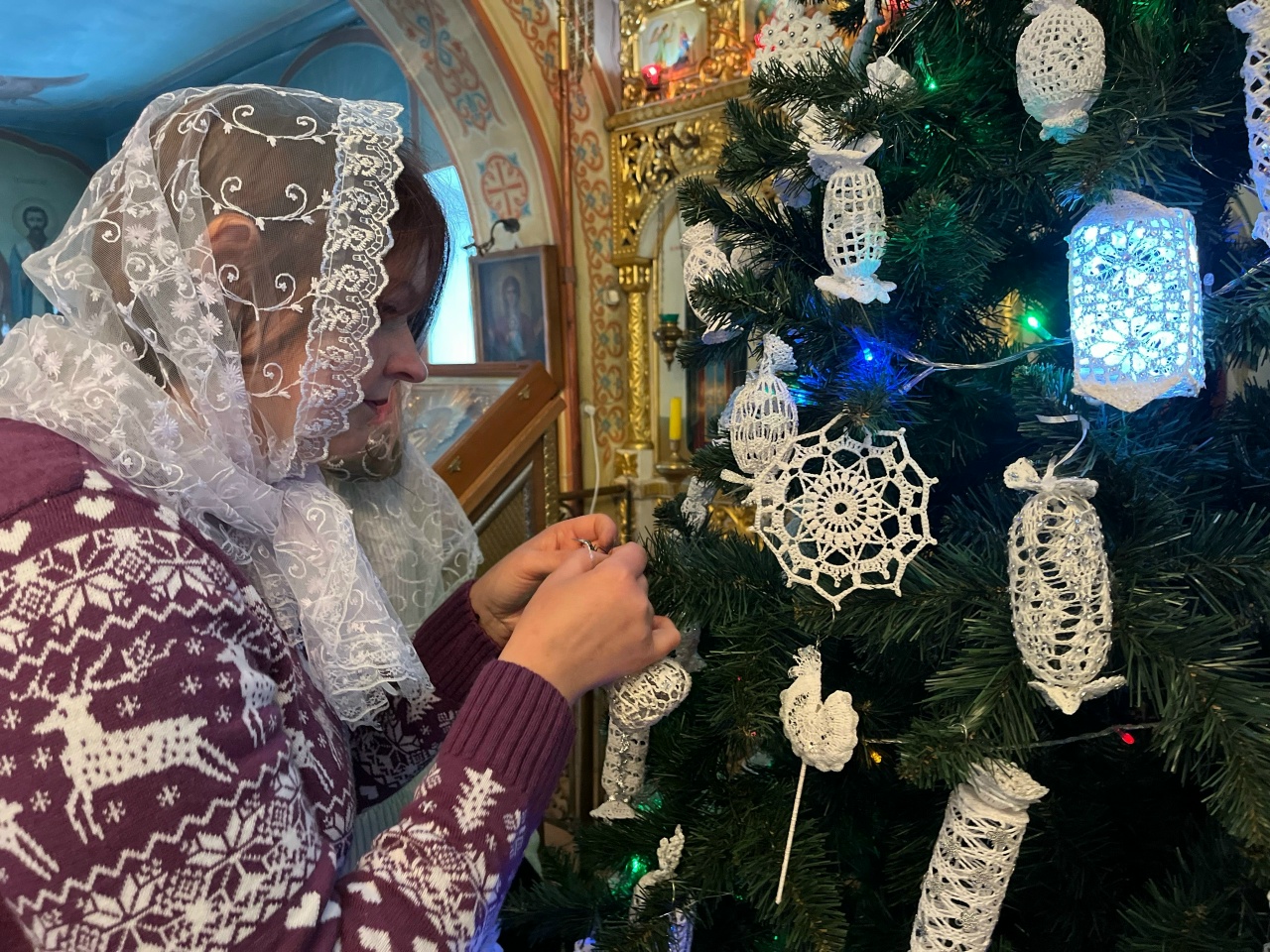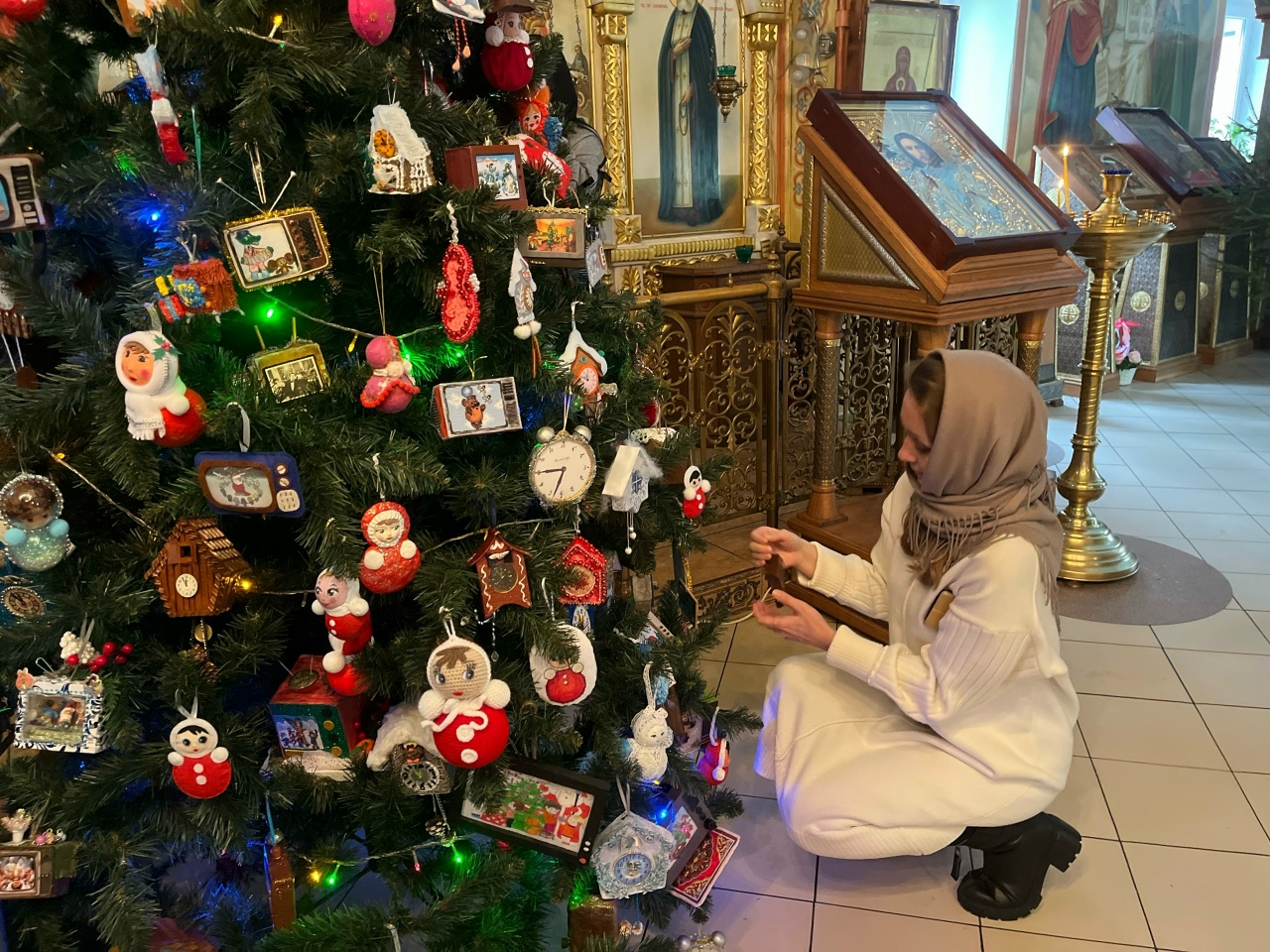 Победившие игрушки по традиции украсили ели в храме в честь иконы Божией Матери «Всех скорбящих Радость». В наряжении деревьев приняли участие глава района, дети-победители, их родители и руководитель изо-студии «Жар-птица» Ольга Хахина.
