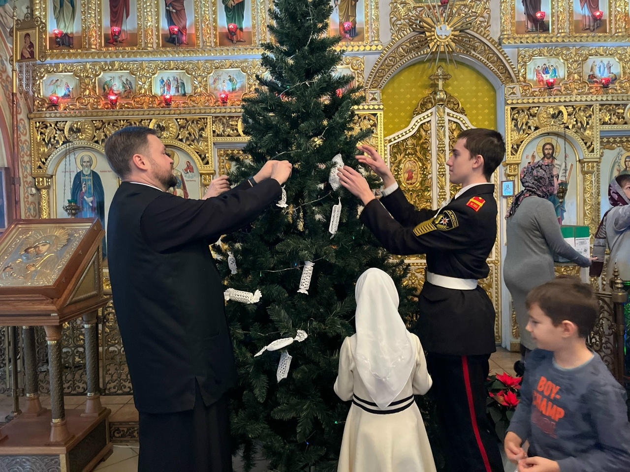 Иерей Алексий Попов отметил: «Это мероприятие стало доброй традицией. Мы всегда рады, когда дети своими руками создают красивые игрушки и украшают ими елки нашего храма и храма Святителя Николая в Кочаках».